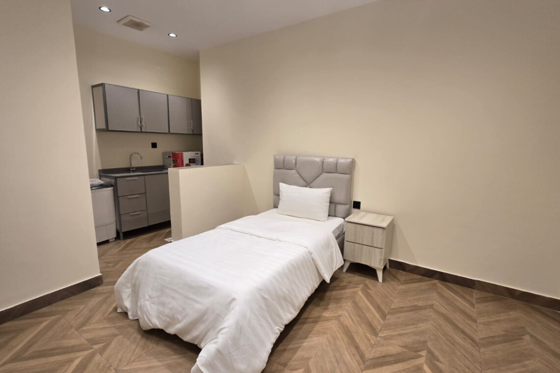 غرفة صغيرة مؤثثة بالكامل ومناسبة لشخص واحد، مناسبة للطلاب والأفراد،